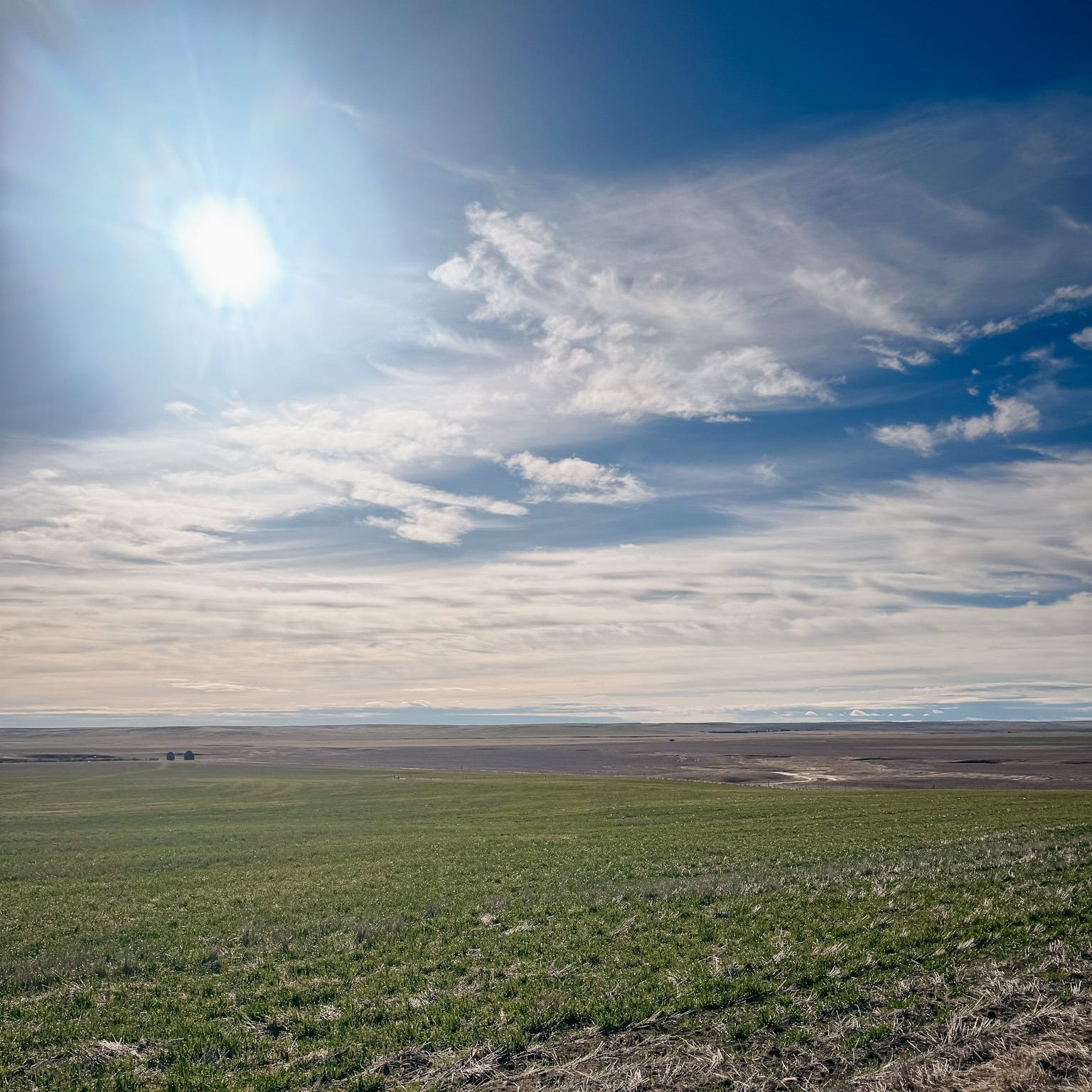 In the past few weeks, I’ve watched the brown grass turn green, and a field of winter wheat shoot up from its months of dormancy. Usually, I walk with a podcast or audiobook in my ears, but sometimes, I walk in silence, watching the big blue sky and wispy clouds above me. From the top of the hill, I can see our house and the farm yard around it, which will soon be bustling with tractors and farm equipment as we move into spring seeding. Another season on the horizon.